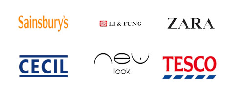 Li & Fung(HK),ASDA(UK), GEORGE(UK),TESCO(UK),NEW LOOK(UK),EVANS(UK),SAINSBURY(UK), DOROTHY PERKINS(UK),CECIL(GERMANY),DEBENHAMS(UK) KOUTONS,(India) QS,(UK) THOMAS NASH,(UK) MANTRAY,(UK) VANITY (GALIHAD),(USA) BIG STAR,(POLAND), GEMO,(FRANCE), NEUVILLE(ITALY), COTTON GINNY(CANADA), OKAIDI(FRANCE), MONO PRIX(FRANCE), ZARA(SPAIN), BEX OF SCANDINAVIA(SWEDEN), DEELUXE(FRANCE), JL INTERNATIONAL(FRANCE), CROSSBY(FRANCE), SAS BABOU(FRANCE), MEIJER(USA), LIZ - CLAIBORNE(USA), PIAZZA ITALIA(ITALY), DIRAMODE(FRANCE), EL-CORTE INGLES(SPAIN),